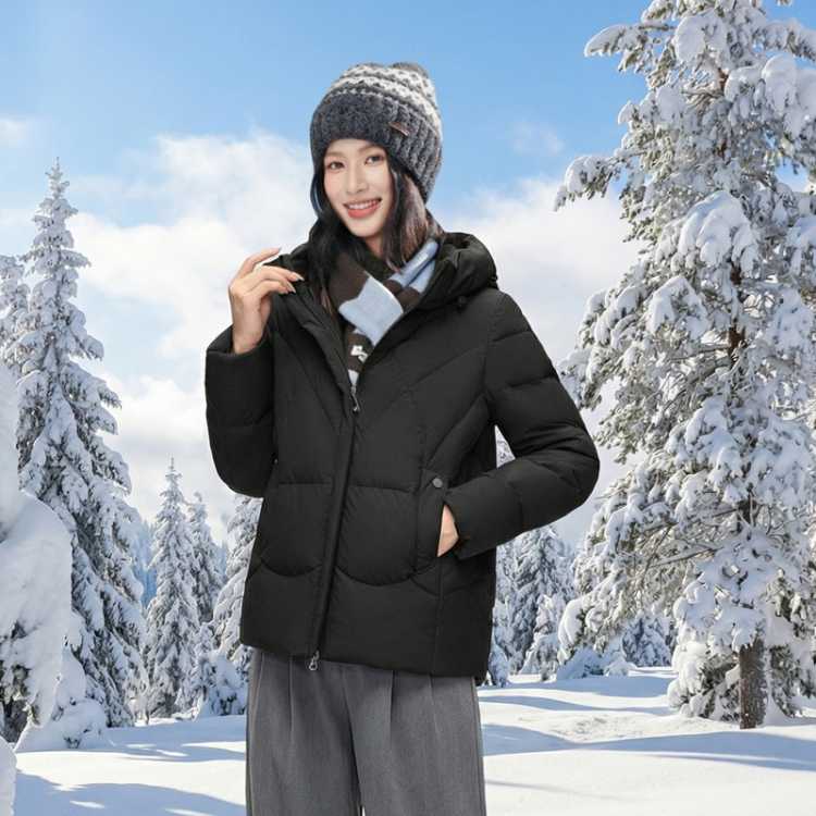 雪中飞 【黑曜石系列】女式短款连帽保暖羽绒服持久锁温抗风保暖宽松舒适