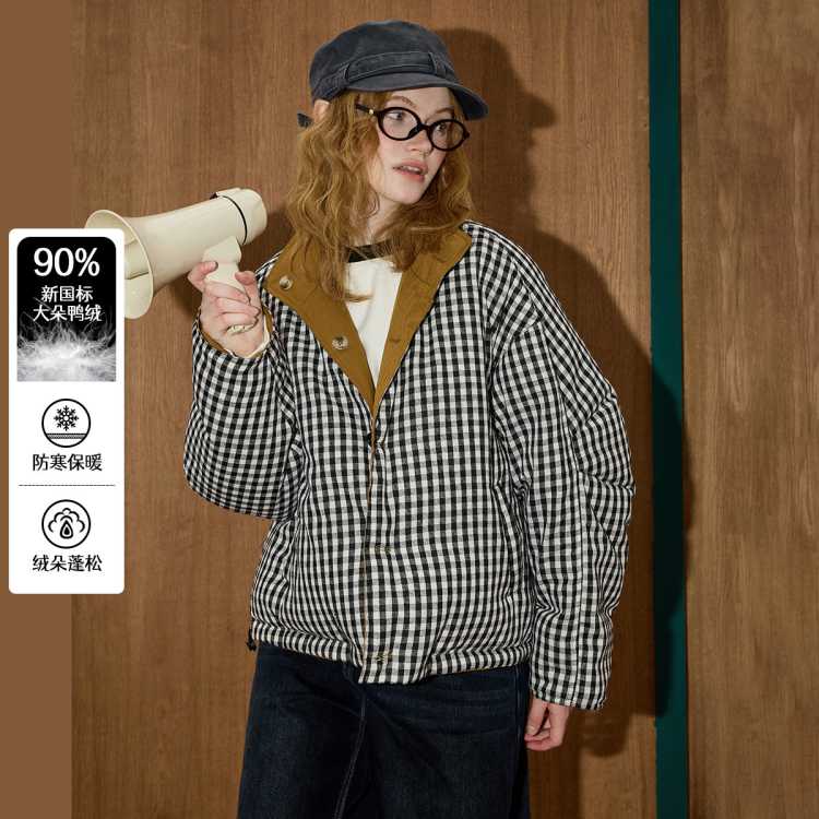 COOLHUT 小众设计感撞色双面穿90绒立领工装休闲宽松2025冬季羽绒服