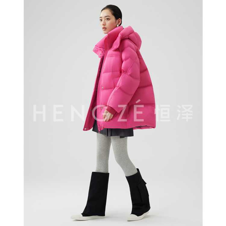 恒泽 25冬季新款连帽中长款羽绒服女高级感气质时尚通勤羽绒外套女
