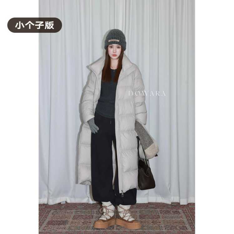 大婉酱 微胖大码小个子女款简约百搭立领羽绒服秋冬季宽松加厚保暖长外套