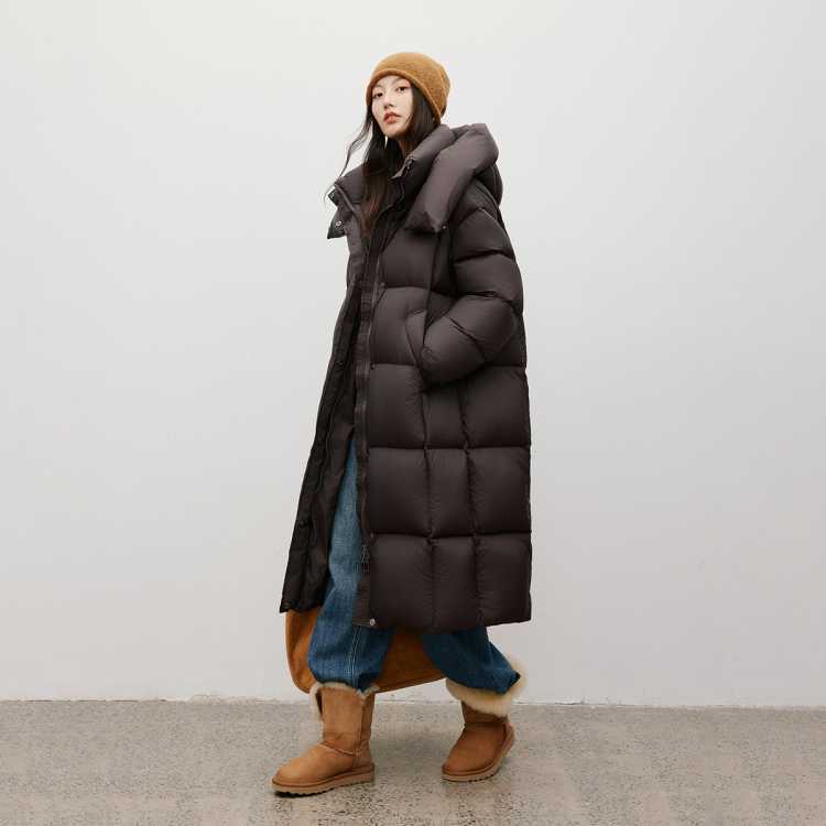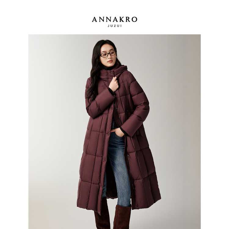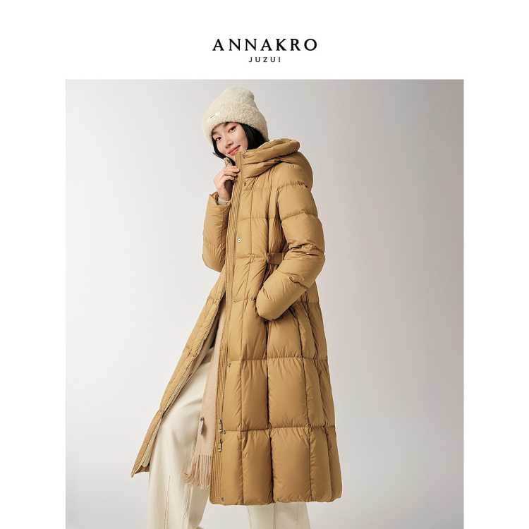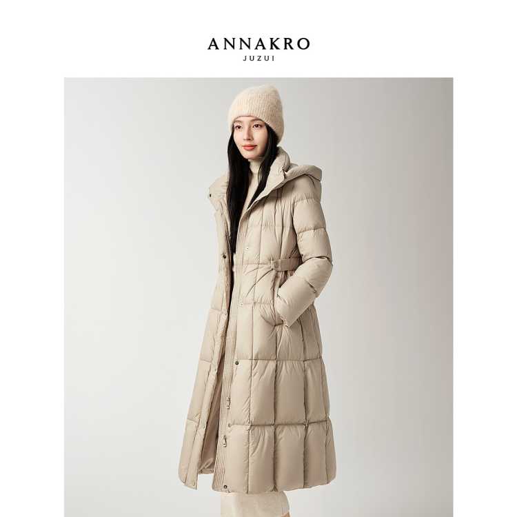 玖姿安娜蔻 厚实保暖高品质抽绳收腰白鹅绒羽绒服女冬季