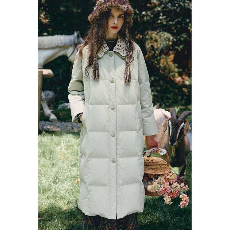 WANCAOYI 菀草壹2025冬装直筒翻领长袖女羽绒服都市休闲长款羽绒