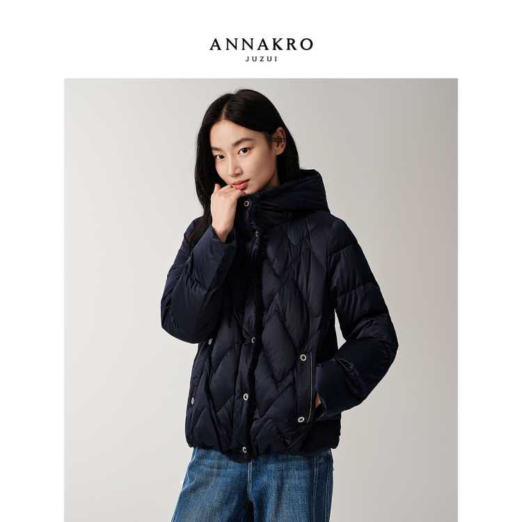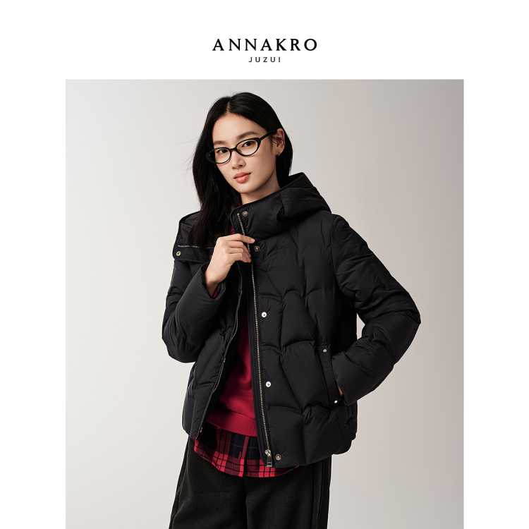 玖姿安娜蔻 休闲通勤减龄连帽短款发热鹅绒羽绒服女2025冬季